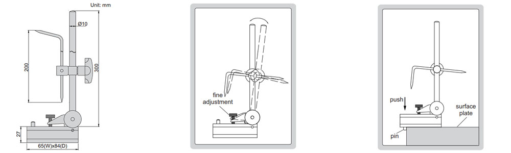 • Hai chốt được đặt dựa vào cạnh của mặt tấm phẳng chuẩn (Two pins to be set against the edge of surface plate).