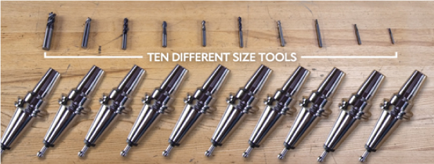 + Với kiểu cán dao này tính linh hoạt tốt. Mỗi kích thước dao chúng ta chỉ cần thay đổi 1 collet phù hợp với đường kính dao.