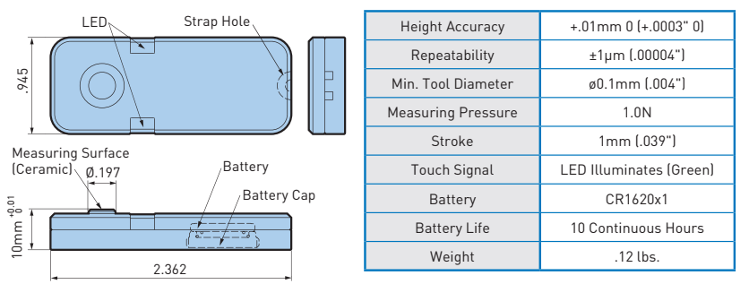 | Độ chính xác chiều cao: | +.01mm 0 (+.0003" 0) |