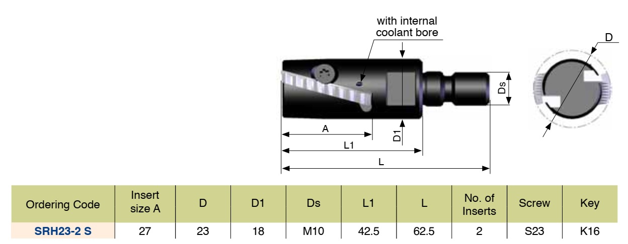 - Cán dao phay ren lỗ sâu CPT SRH23-2 S lý tưởng cho các ứng dụng phay ren lỗ sâu mà các loại cán dao thông thường không gia công tới.