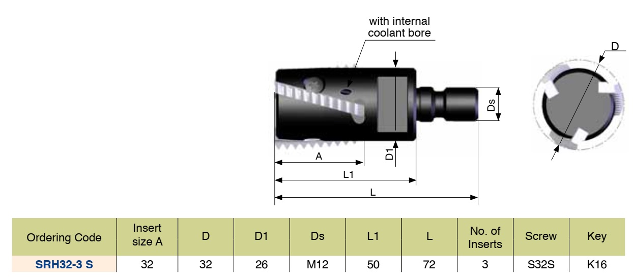 - Cán dao phay ren lỗ sâu CPT SRH32-3 S lý tưởng cho các ứng dụng phay ren lỗ sâu mà các loại cán dao thông thường không gia công tới.