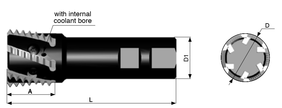 - Cán dao có rãnh xoắn ốc giữ từ 4 đến 6 mảnh dao.