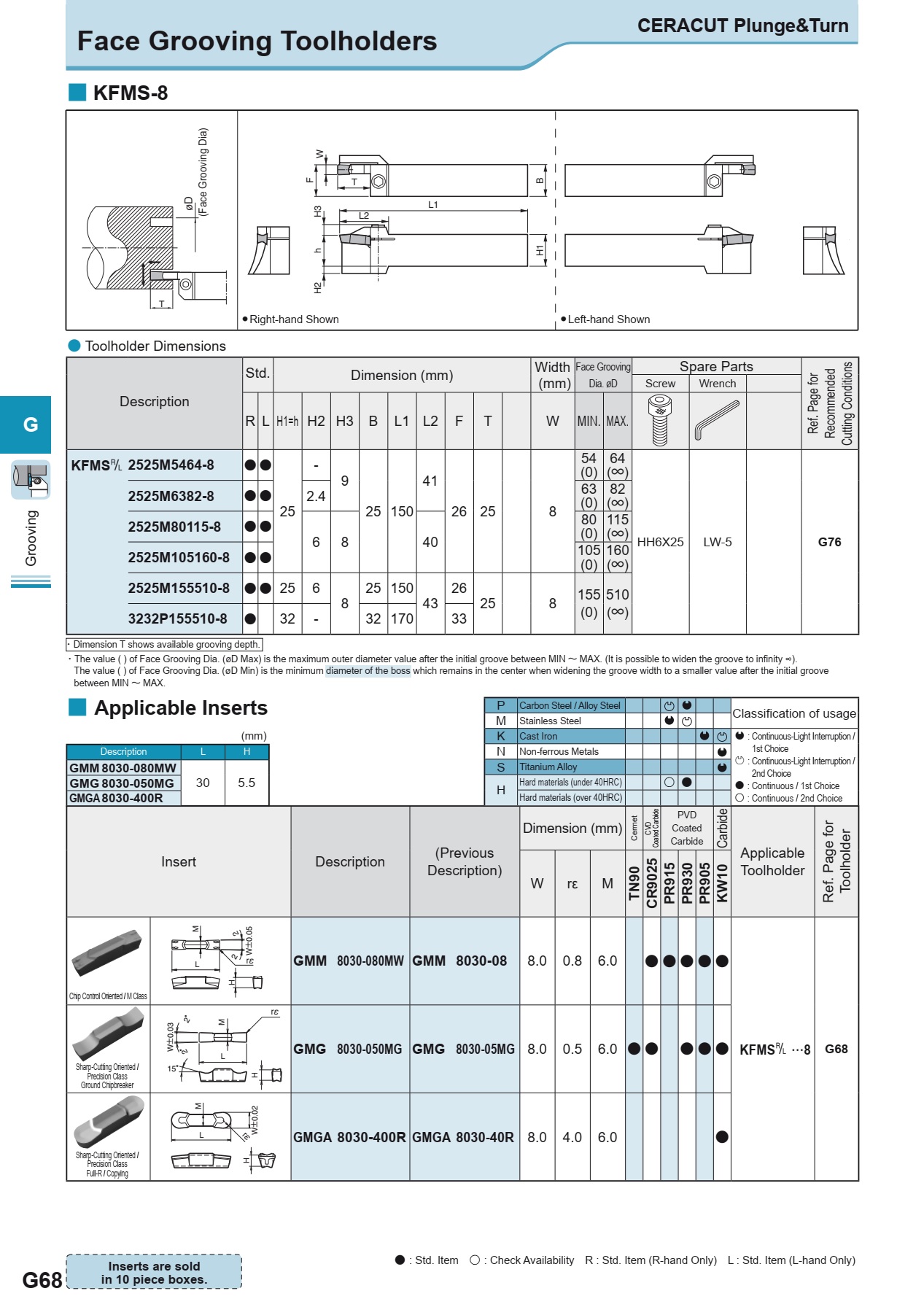 Dòng sản phẩm Dao tiện rãnh mặt đầu Kyocera KFM chuyên dùng để gia công tiện rãnh mặt đầu cho các chi tiết cơ khí cần tạo rãnh mặt đầu có đường kính lớn từ 𝜙25 - 𝜙235 cũng như độ sâu mặt từ 13mm - 25mm và yêu cầu độ chính xác cao.