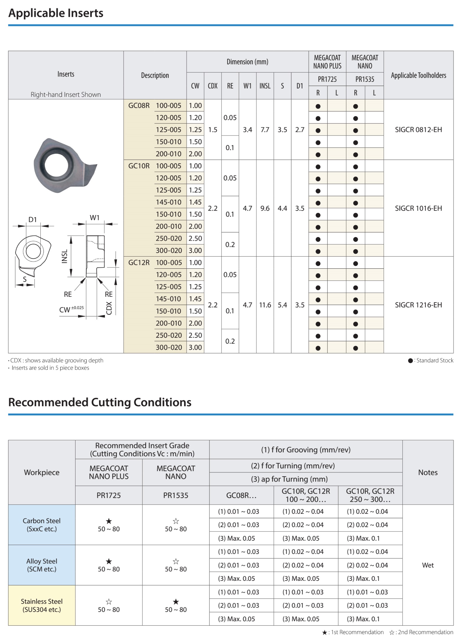 Sử dụng insert GC với các lớp phủ PR1535 và PR1725 phù hợp gia công các loại thép, inox