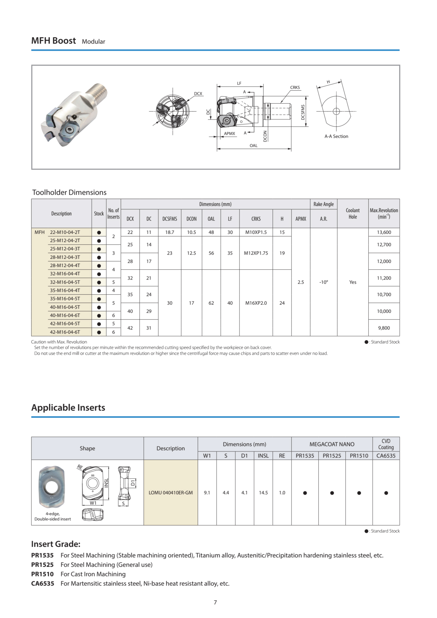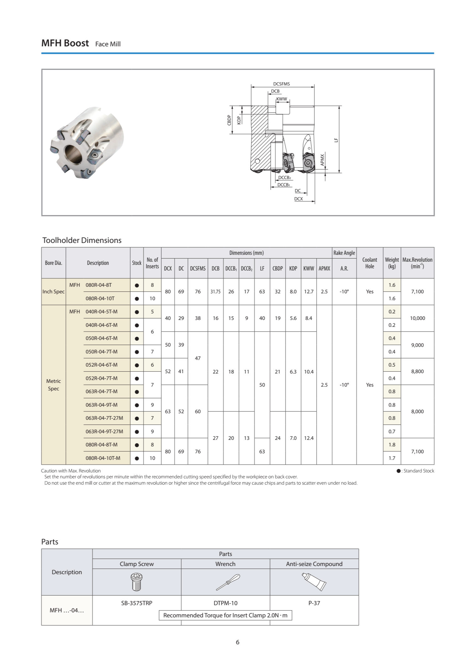 Mã đặt hàng: MFH08-M06-01-1T, MFH10-M06-01-2T, MFH12-M06-01-3T, MFH14-M06-01-3T, MFH16-M08-01-4T, MFH100R-14-6T, MFH100R-14-6T-M