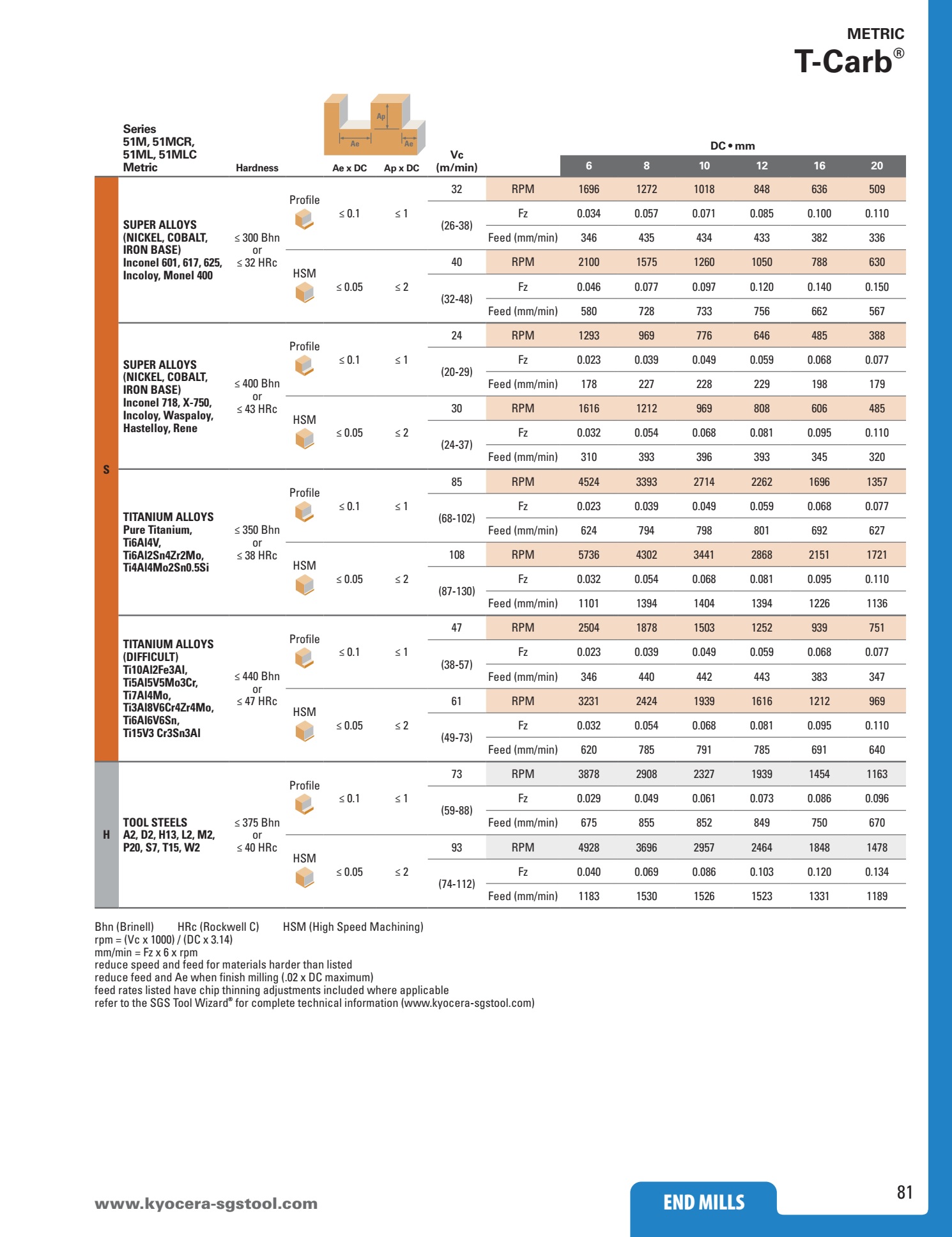 Dao phay ngón phẳng 6 me KYOCERA SGS Series T-Carb 51M và 51MCR: