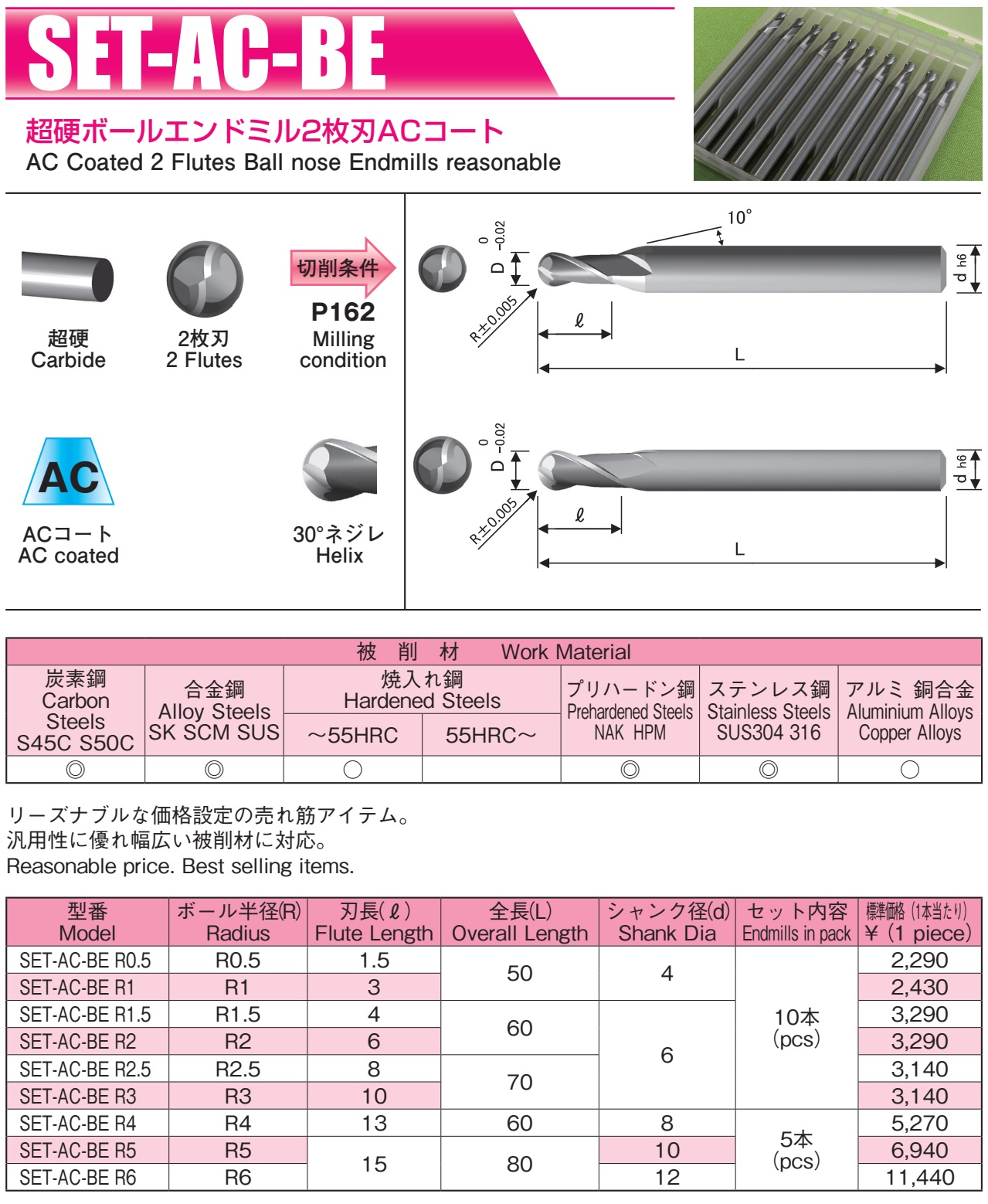 Dưới đây là catalog của Dao Phay Ngón Cầu Hợp Kim 2 Me Segawa SET-AC-BE