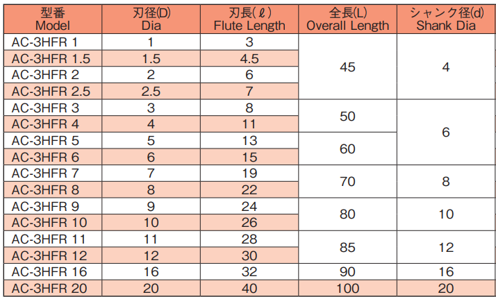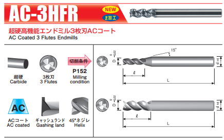 Dưới đây là catalog của dao phay ngón hợp kim 3 me phi 12 Segawa AC-3HFR 12.