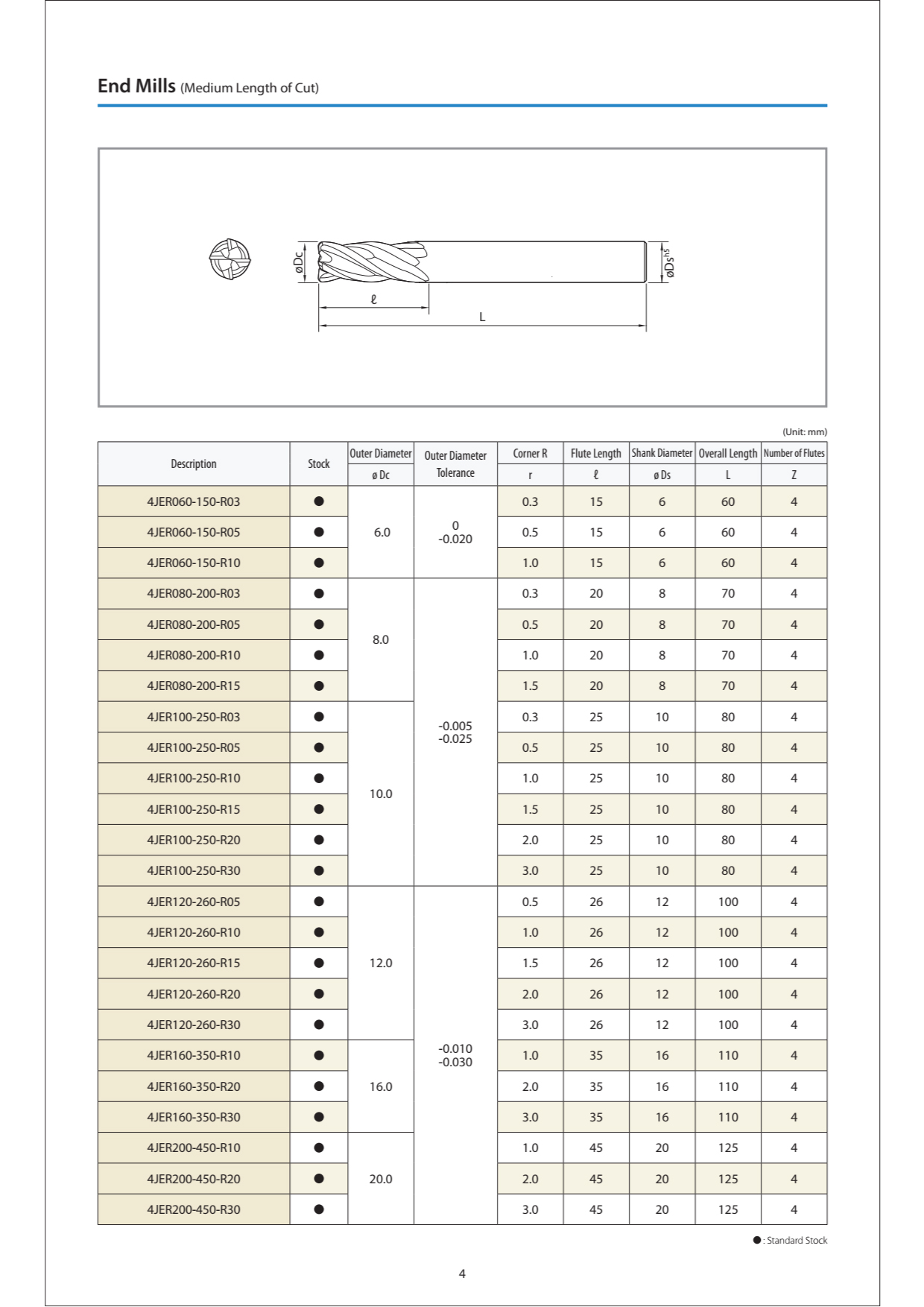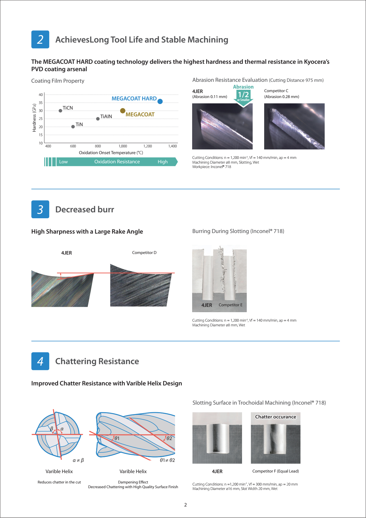 Dòng sản phẩm Dao Phay Ngón Hợp Kim Gia Công Titan Inconel Kyocera 4JER chuyên vật liệu hợp kim chịu nhiệt như Titan, Inconel được thiết kế để sử dụng trong gia công cơ khí chính xác với các tính năng: