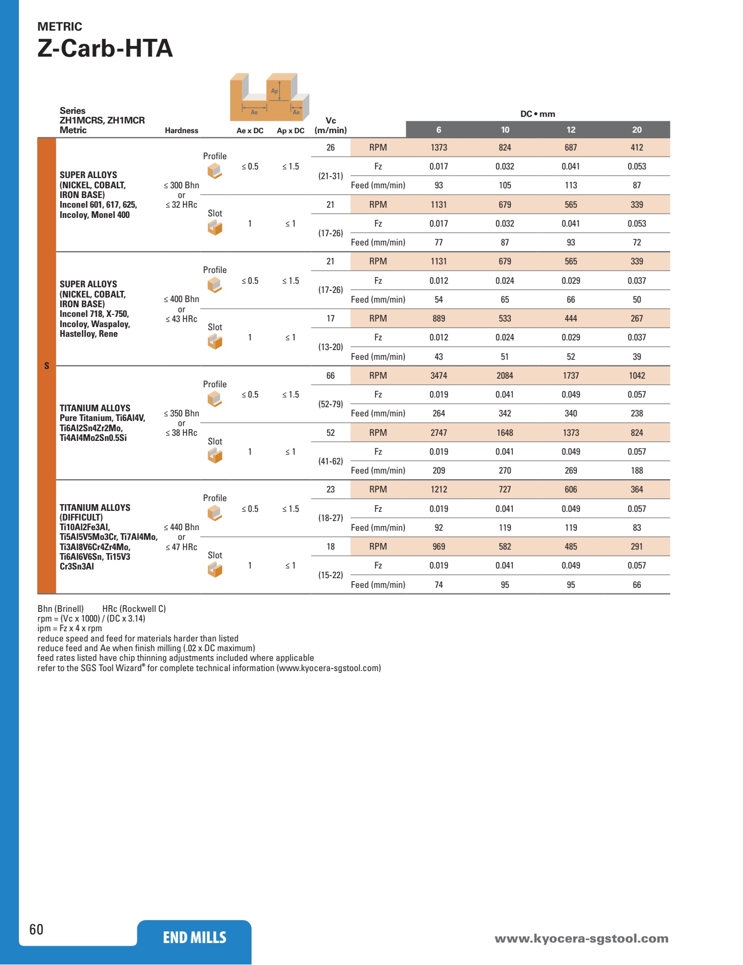 Dòng sản phẩm Dao phay ngón Kyocera SGS Z-Carb HTA (ZH1CR, ZH1MCRS, ZH1MCR) thương hiệu Kyocera SGS từ Mỹ với các tính năng: