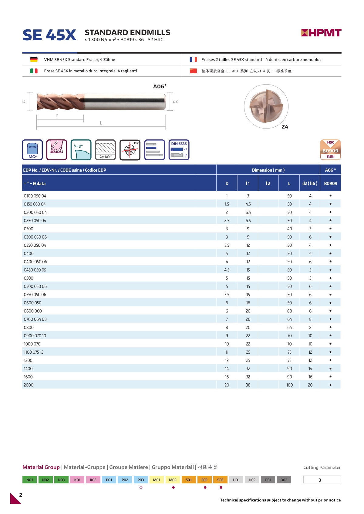 HPMT ra mắt dòng dao phay trụ SE 45X (A06) cải tiến với chất liệu tiên tiến và hình dạng mới.