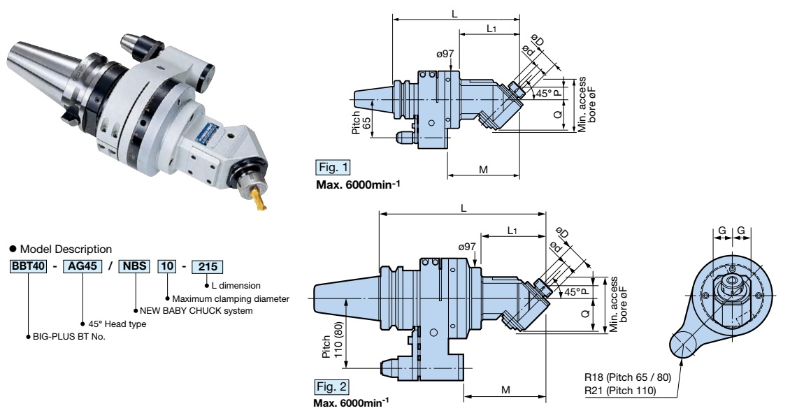 Mã đặt hàng: BBT40-AG45/NBS10-215, BBT40-AG45/NBS13-220, BBT50-AG45/NBS10-260, BBT50-AG45/NBS13-265.