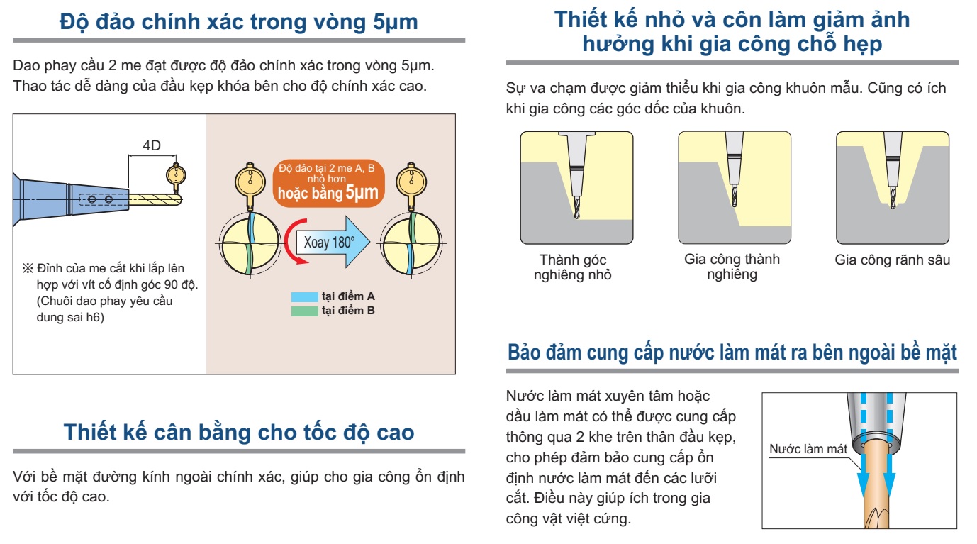 Đầu Kẹp Có Độ Chính Xác Cao Cho Gia Công Khuôn Mold Chuck có kết cấu đơn giản, tháo lắp dễ dàng chỉ cần 1 lục giác duy nhất.