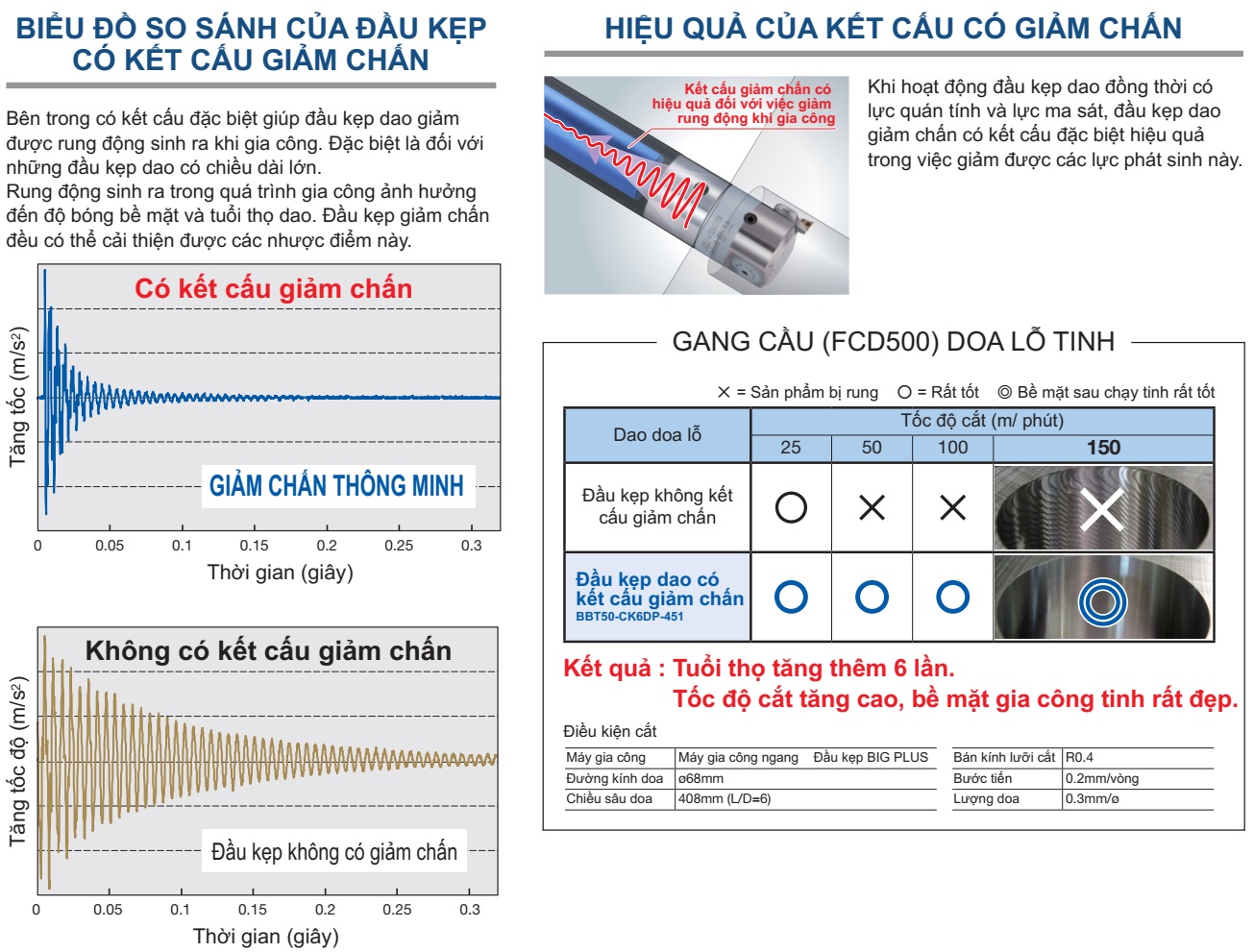 Đầu kẹp giảm rung Smart Damper CK Boring System có cấu tạo giảm chấn đặc biệt, hiệu quả cho vấn đề chống rung động khi gia công! Đầu kẹp dao siêu dài gia công tốc độ và hiệu quả cao.