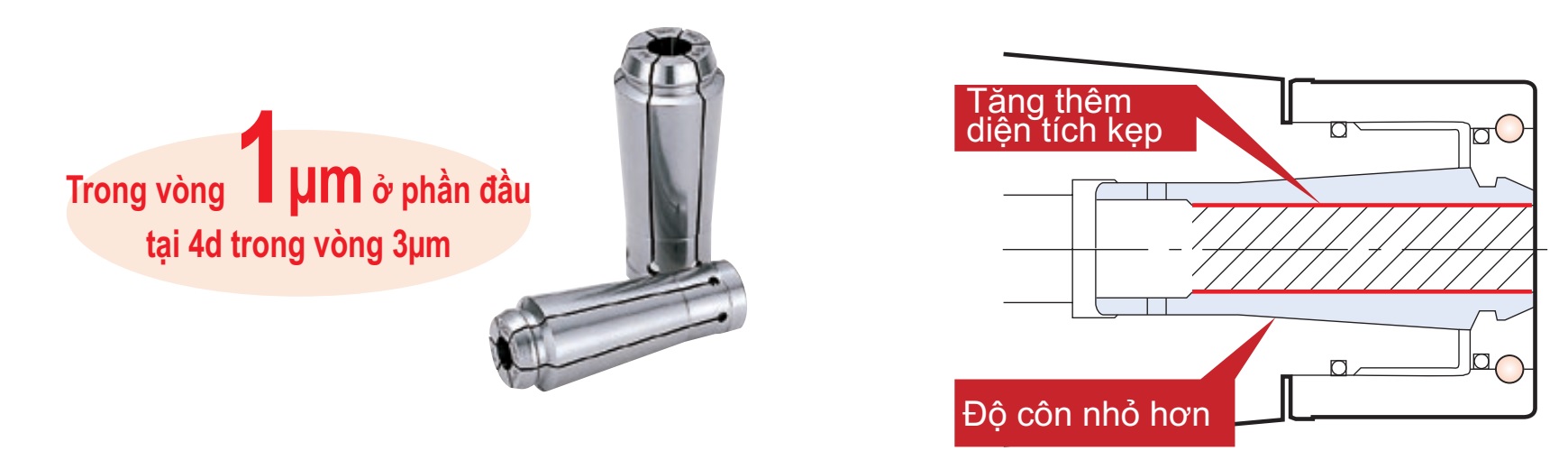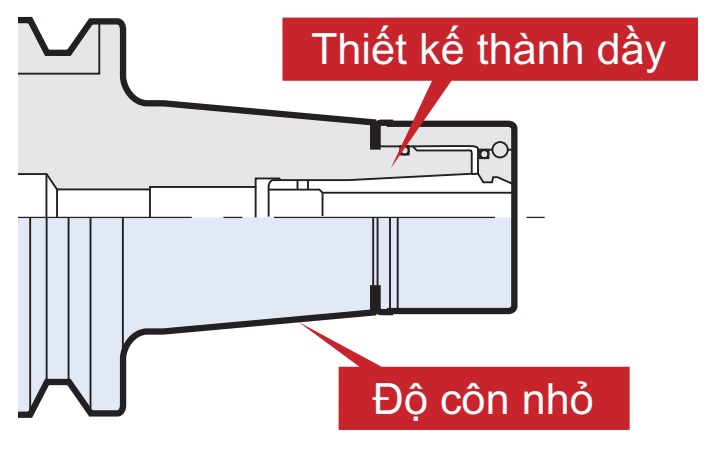 Thân đầu kẹp được thiết kế dầy hơn để chống rung động và tăng độ bóng bề mặt khi gia công.