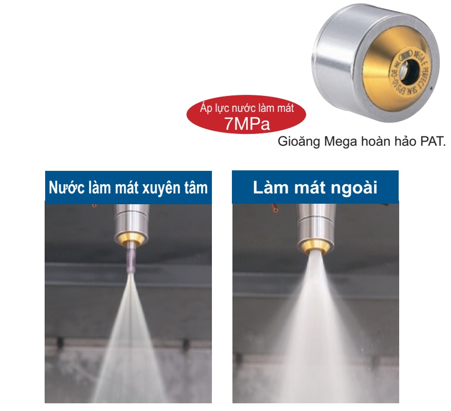 Cung cấp nước làm mát xuyên tâm với gioăng cao su bên trong nắp siết.