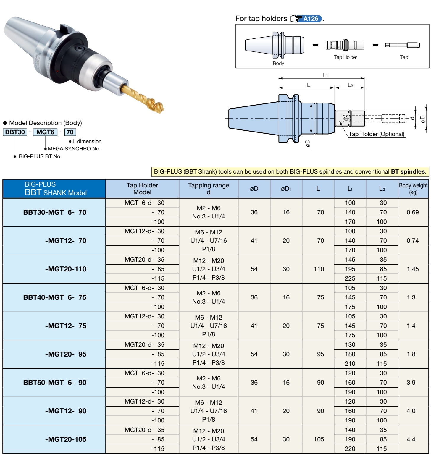 BBT30-MGT6- 70, BBT30-MGT12- 70, BBT30-MGT20-110, BBT40-MGT6- 75, BBT40-MGT12- 75, BBT40-MGT20- 95, BBT50-MGT6- 90, BBT50-MGT12- 90 ,BBT50-MGT20-105.