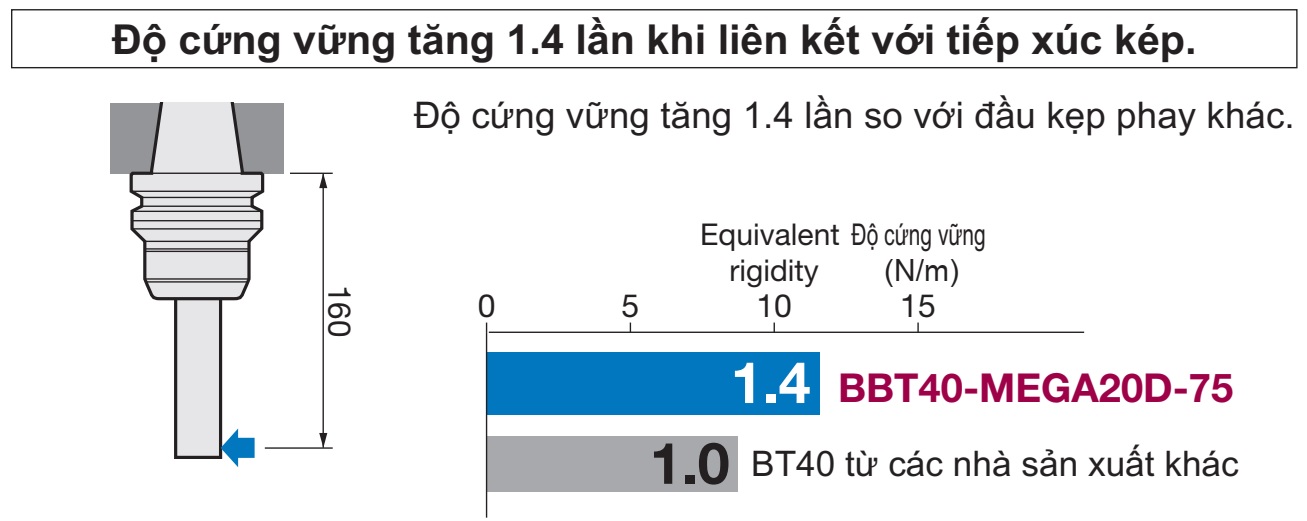 Đảm bảo độ cứng vững cao khi gia công với lực cắt lớn mà không bị dung động.