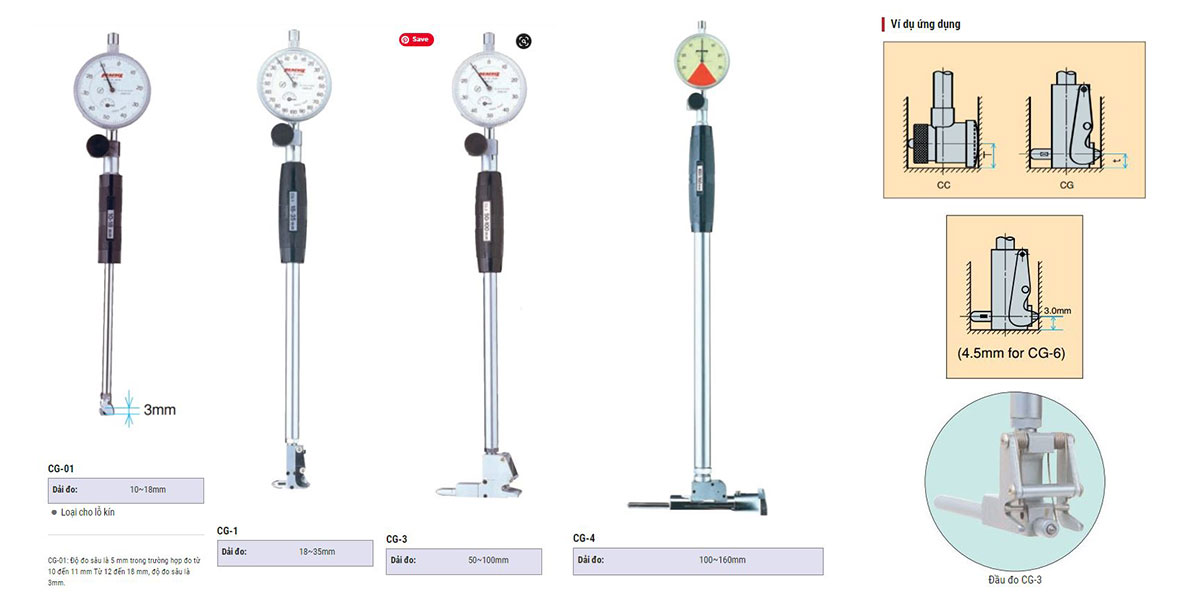 Lưu ý: Không sử dụng dòng CG Series để đo lỗ cụt, với nhu cầu này bạn cần phải dùng dòng CG Series có đế thiết kế chuyên dụng phù hợp như dưới đây.