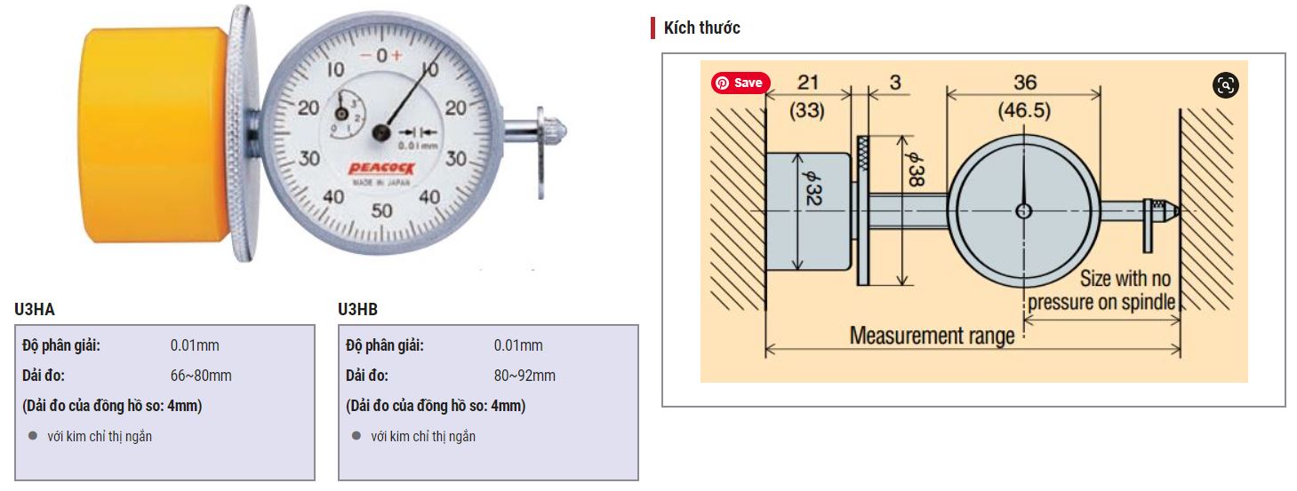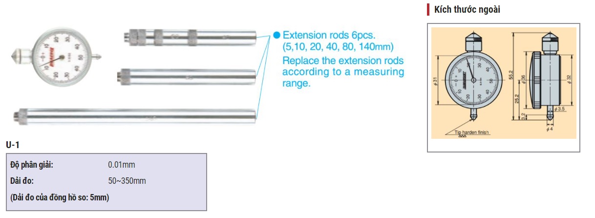 Đồng hồ đo lỗ trong Peacock dòng U Có khả năng đo liên tục các lỗ khoan tương đối lớn hoặc bề mặt tường bên trong với một lực đo nhất định bằng cách sử dụng tính linh hoạt của đồng hồ.