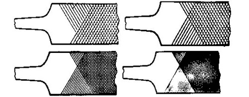 + Dũa đan chéo thường dùng đối với những người thợ có tay nghề thấp.