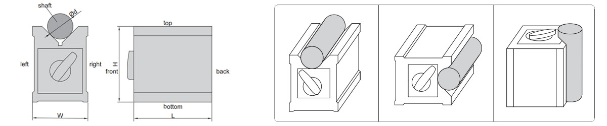 - Sử dụng đế gá các chi tiết trụ tròn, có đường kính ø6~ø67mm, thích hợp để đo kiểm, không thích hợp để gia công.