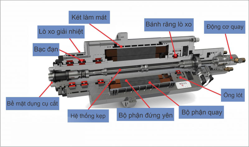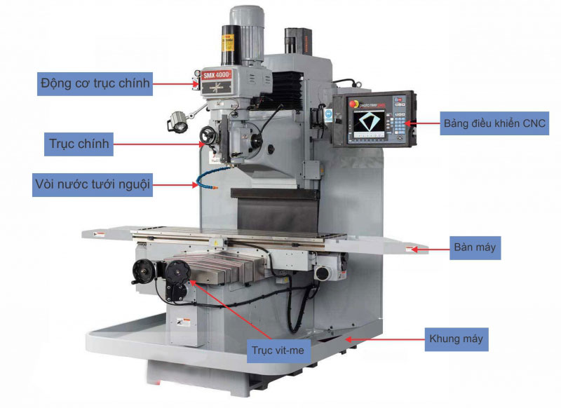 - Trục chính của máy phay CNC có phần côn ở đầu dùng để gá dao.