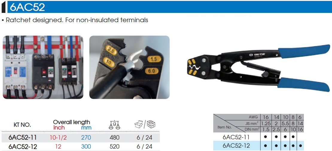 Thông số kỹ thuật Kìm Bấm Đầu Cos Kingtony 6AC52-12