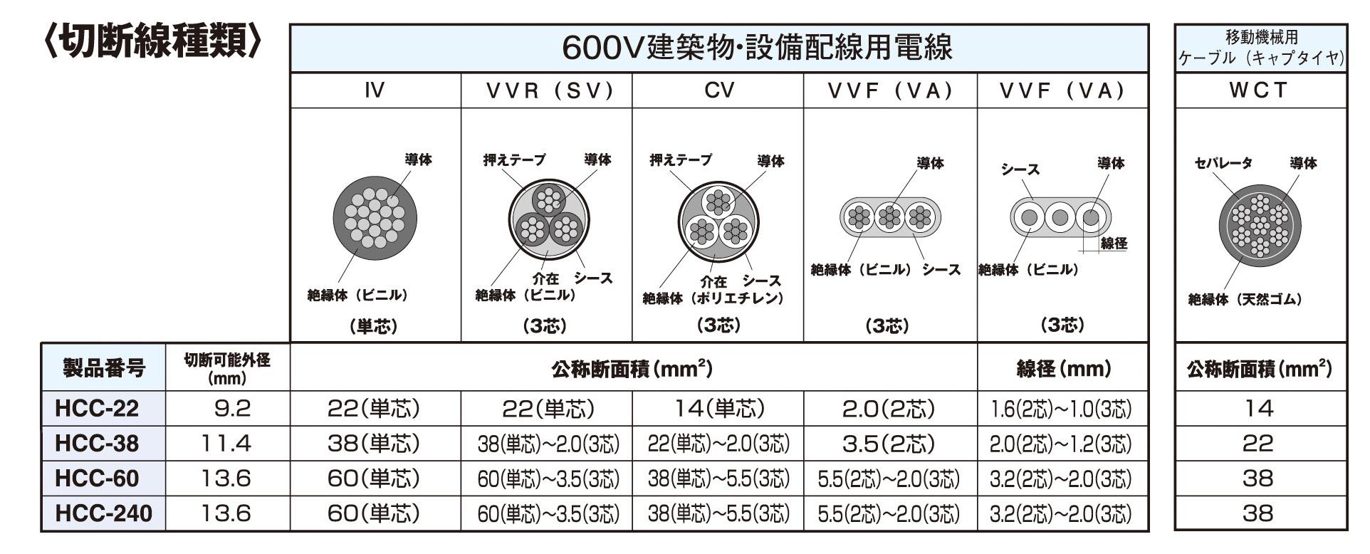 Khả năng cắt các loại dây cụ thể của kìm cắt HCC-38: