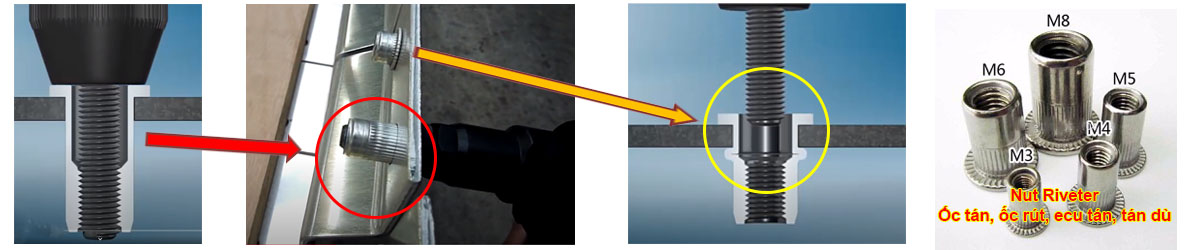 - Kìm rút ốc tán, kìm rút ecu tán (Hand Nut Riveter Gun), dùng để rút ốc tán hay (ecu tán, tán rút, ốc rút, hạt đinh tán, Nut Riveter).
