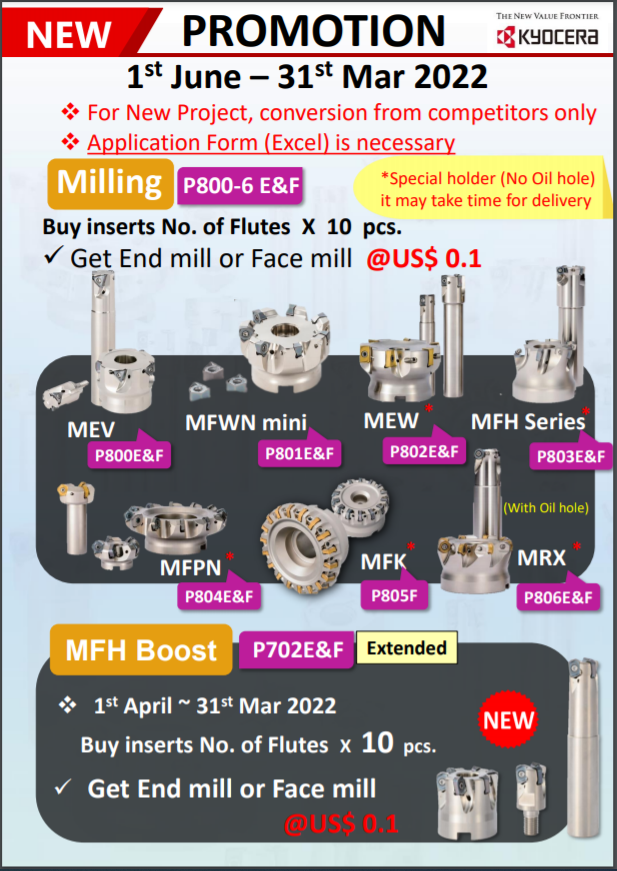 Và còn rất nhiều chương trình khuyến mãi khác hấp dẫn được thiết kế dành riêng cho từng khách hàng, mọi chi tiết xin vui lòng liên hệ VATTUCOKHI247 - đại lý chính hãng toàn quốc của KYOCERA Cutting Tools.