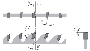 | Diameter | Kerf | Plate Thickness | Center hole | Teeth | A | B | C | D | |