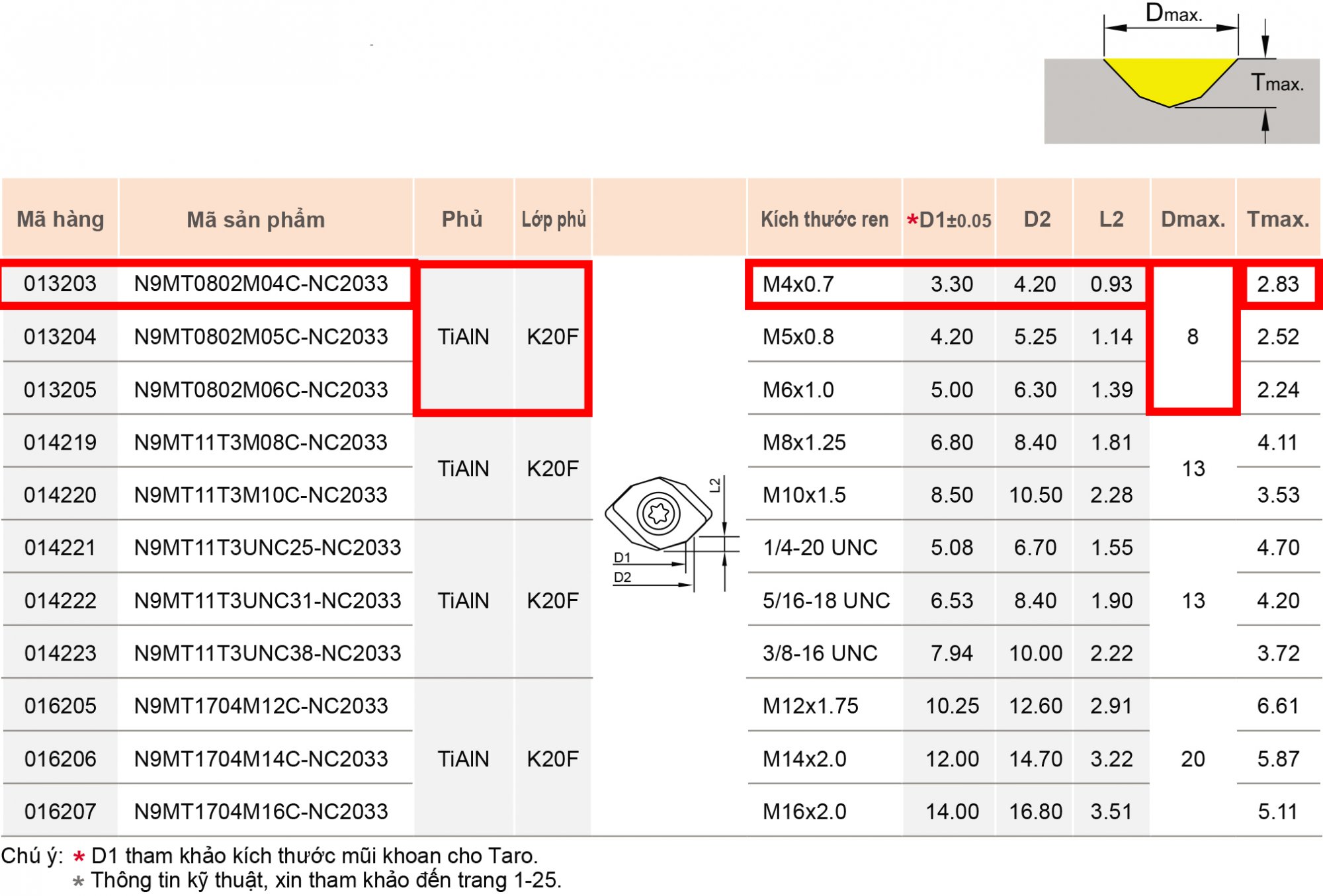 Vật liệu: Carbide, có phủ