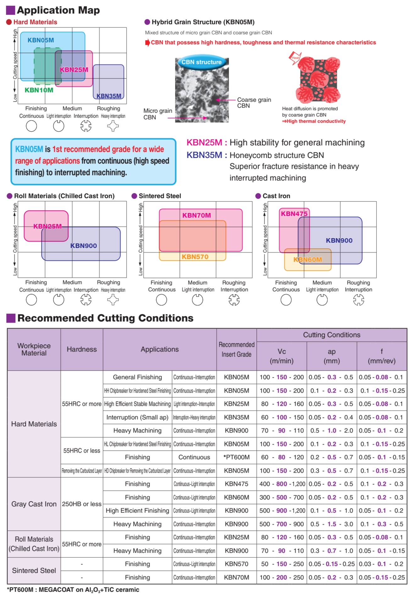 Dòng insert tiện CBN (cubic boron nitride) sử dụng để gia công vật liệu cứng như thép nhiệt luyện, thép tôi với độ bóng bề mặt và độ chính xác cao, sản phẩm này có khả năng chống mài mòn cao.