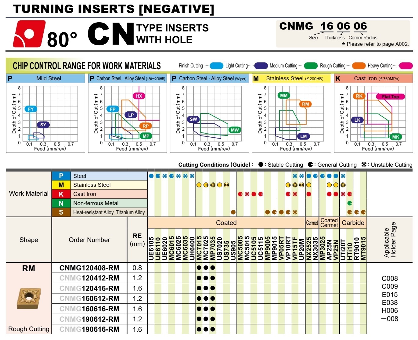 CNMG120408-RM MC7015, CNMG120408-RM MC7025, CNMG120408-RM MP7035, CNMG120412-RM MC7015, CNMG120412-RM MC7025, CNMG120412-RM MP7035, CNMG120416-RM MC7015, CNMG120416-RM MC7025, CNMG120416-RM MP7035, CNMG160612-RM MC7015, CNMG160612-RM MC7025, CNMG160612-RM MP7035, CNMG160616-RM MC7015, CNMG160616-RM MC7025, CNMG160616-RM MP7035, CNMG190612-RM MC7015, CNMG190612-RM MC7025, CNMG190612-RM MP7035, CNMG190616-RM MC7015, CNMG190616-RM MC7025, CNMG190616-RM MP7035