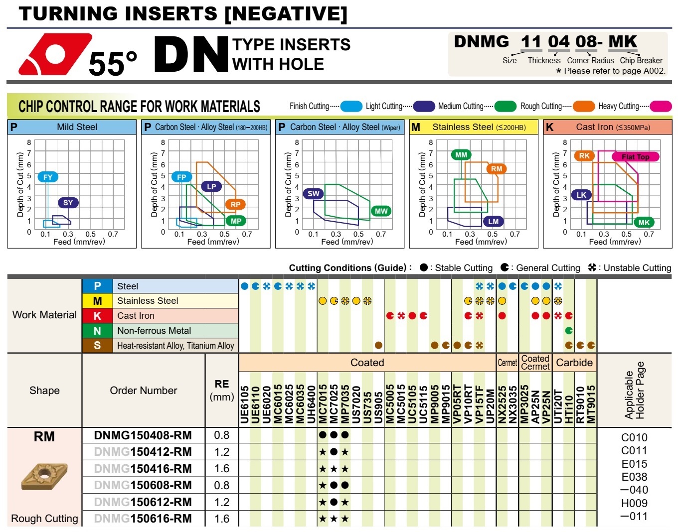 DNMG150408-RM MC7015, DNMG150408-RM MC7025, DNMG150408-RM MP7035, DNMG150412-RM MC7015, DNMG150412-RM MC7025, DNMG150412-RM MP7035, DNMG150416-RM MC7015, DNMG150416-RM MC7025, DNMG150416-RM MP7035, DNMG150608-RM MC7015, DNMG150608-RM MC7025, DNMG150608-RM MP7035, DNMG150612-RM MC7015, DNMG150612-RM MC7025, DNMG150612-RM MP7035, DNMG150616-RM MC7015, DNMG150616-RM MC7025, DNMG150616-RM MP7035