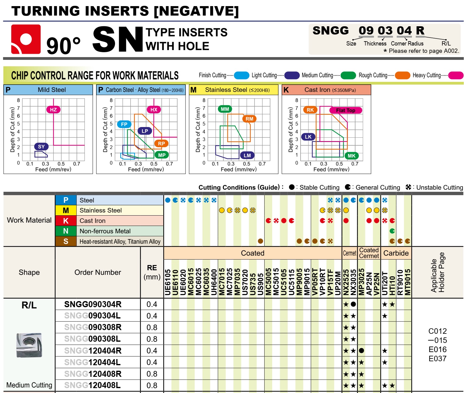 SNGG090304R NX2525, SNGG090304R NX3035, SNGG090304R UTi20T, SNGG090304R HTi10, SNGG090304L NX2525, SNGG090304L NX3035, SNGG090304L UTi20T, SNGG090308R NX2525, SNGG090308R NX3035, SNGG090308L NX2525, SNGG090308L NX3035, SNGG120404R NX2525, SNGG120404R NX3035, SNGG120404R MP3025, SNGG120404R UTi20T, SNGG120404L NX2525, SNGG120404L NX3035, SNGG120404L MP3025, SNGG120404L UTi20T, SNGG120408R NX2525, SNGG120408R NX3035, SNGG120408R MP3025, SNGG120408L NX2525, SNGG120408L NX3035, SNGG120408L MP3025, SNGG120408L UTi20T, SNGG120408L HTi10.