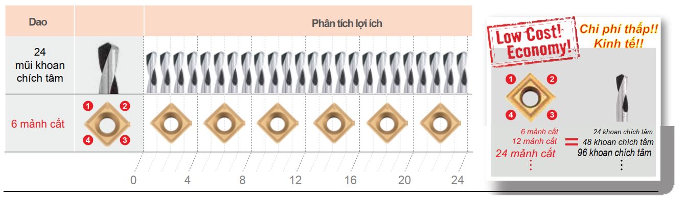 Hình phân tích lợi ích của 6 mảnh cắt bằng 24 mũi spot thông thường.