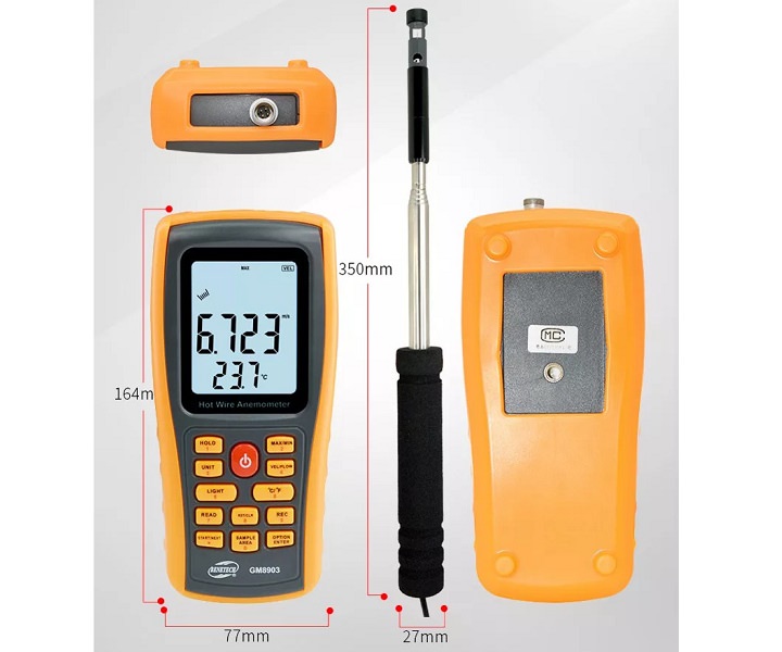 Máy Đo Tốc Độ, Lưu Lượng, Nhiệt Độ Gió Dùng Đầu Dò Nhỏ Total Meter GM8903 là thiết bị đo gió cầm tay chuyên dụng, máy này có ưu điểm hơn so với máy đo vận tốc gió thông thường vì đầu dò nhỏ gọn nên có thể sử dụng được ở những khu vực có không gian nhỏ hẹp.