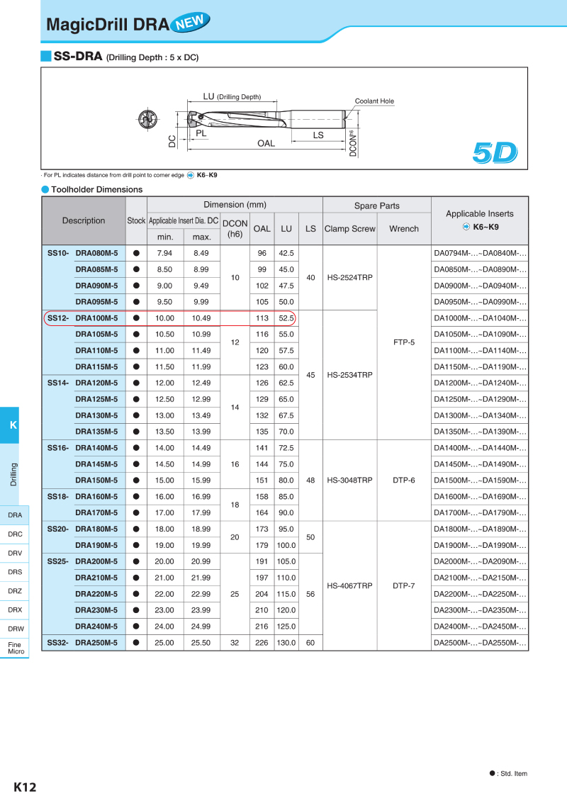 Sản phẩm Mũi Khoan Gắn Mảnh Khoan Sâu 5D KYOCERA DRA SS12-DRA100M-5 lắp insert khoan giúp tiếp kiệm chi phí có chức năng tưới nguội xuyên tâm chất lượng cao, gia công khoan không cần khoan mồi.
