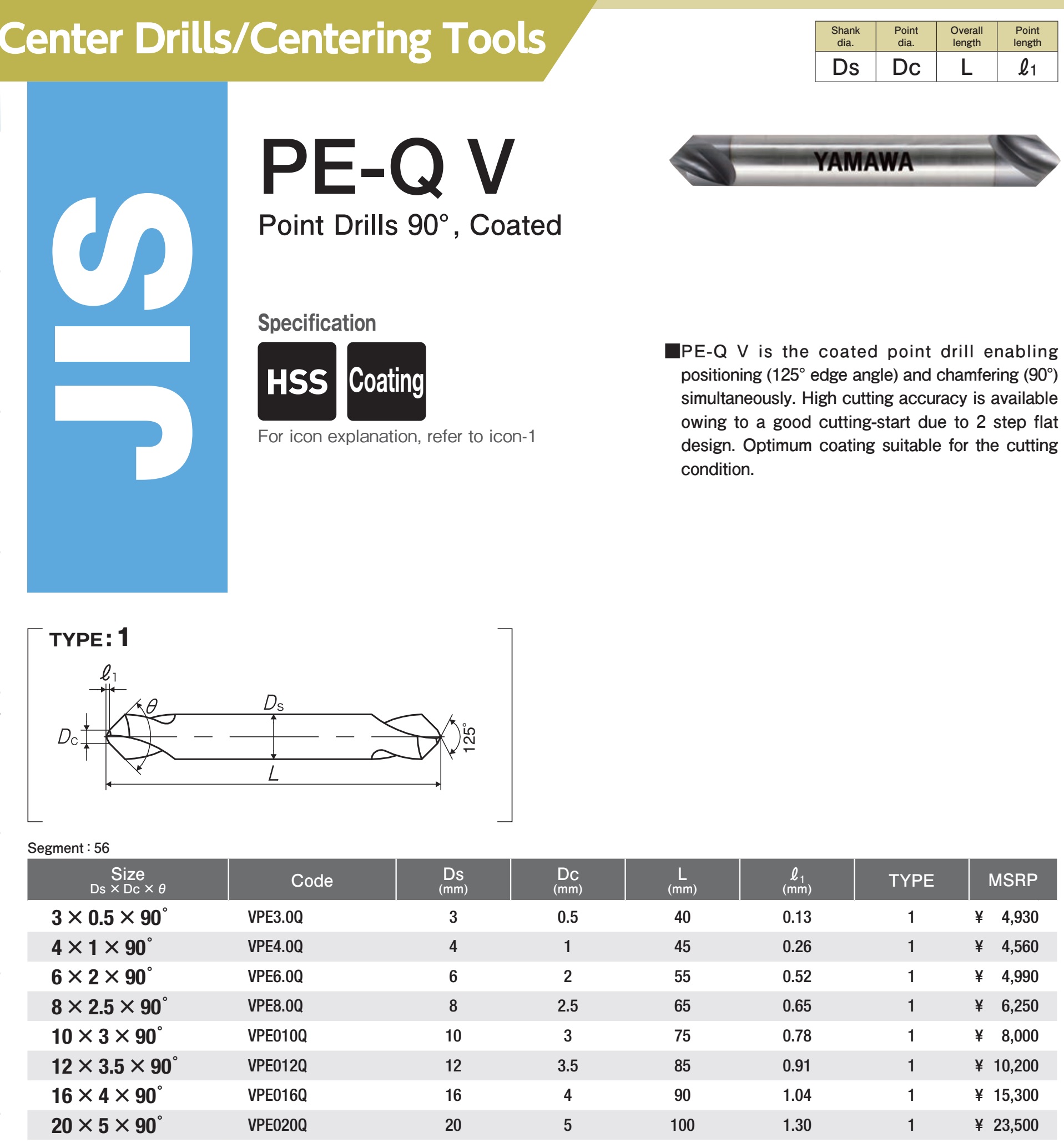 Bảng giá Mũi khoan tâm, vát cạnh, vát lỗ, chạy rãnh V 90 độ Yamawa PE-Q V: