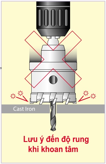 Trường hợp khoan lỗ trên tấm thép dày hơn 5mm và liên tục, nên chọn tốc độ quay chậm hơn.