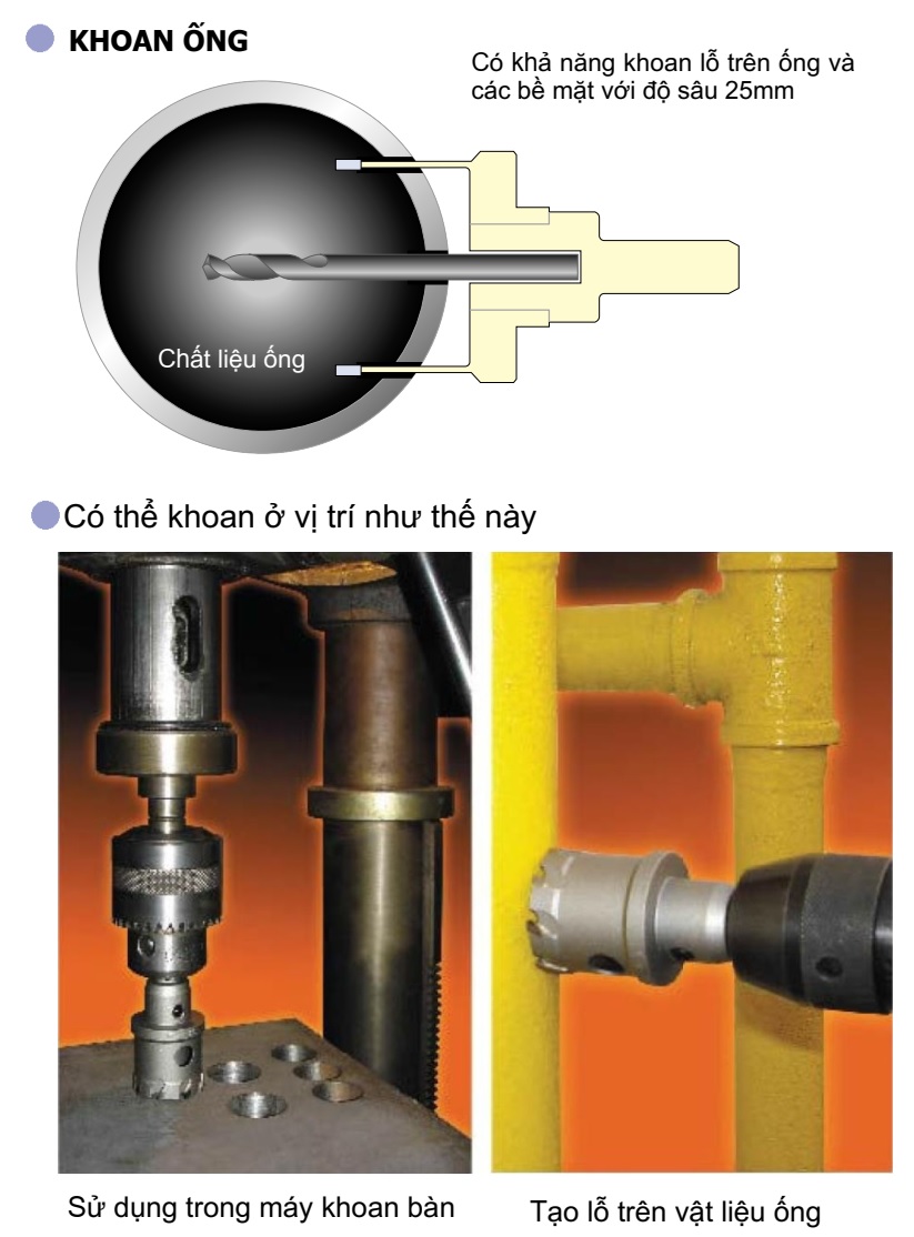 Bằng việc chế tạo đầu mũi khoan định tâm thành cấu trúc 2 tầng đã giảm được thời gian khi khoan tâm và tránh được việc làm hỏng các lưỡi cắt hợp kim carbide.