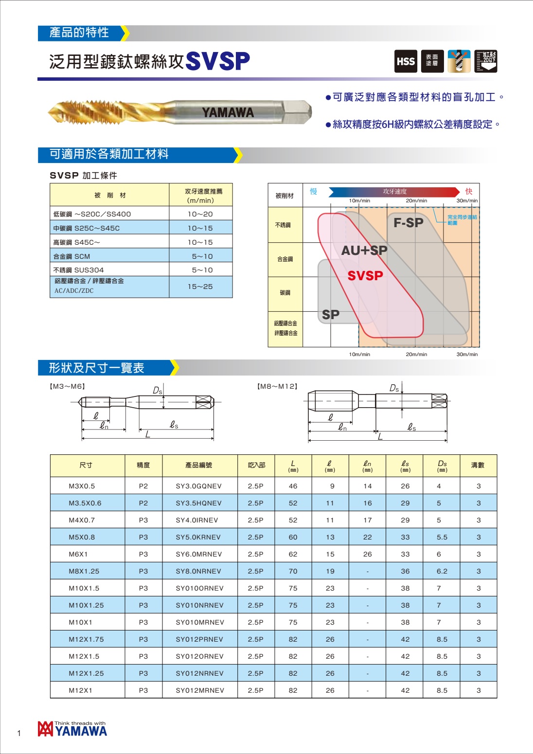 ● Mũi taro xoắn phủ TiN SVSP Yamawa có thể chạy được đa vật liệu:
