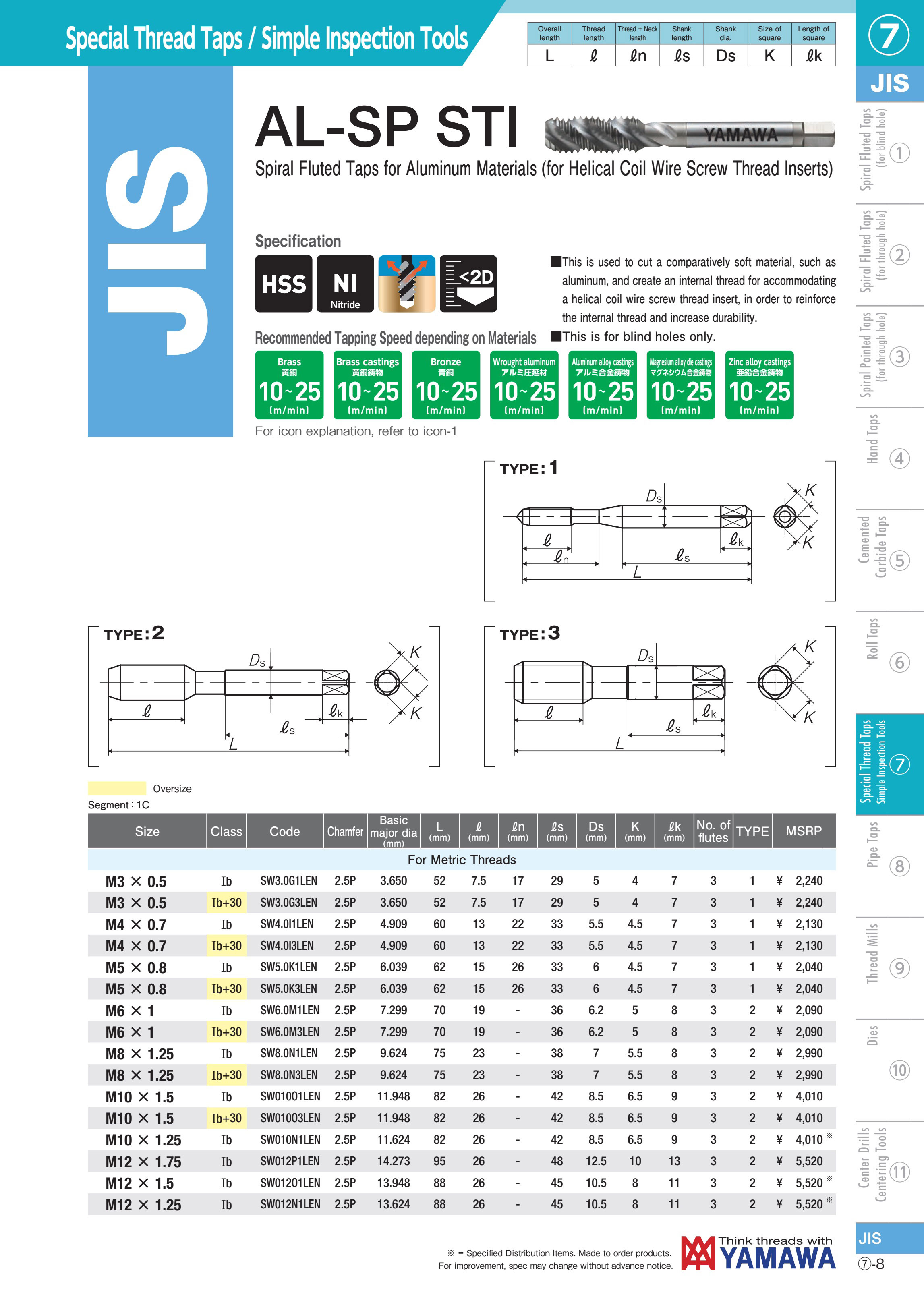 YAMAWA đưa ra các mũi taro riêng biệt cho ren cấy (hay mũi taro STI), dùng để gia công lỗ ren trước khi chèn ren cấy.