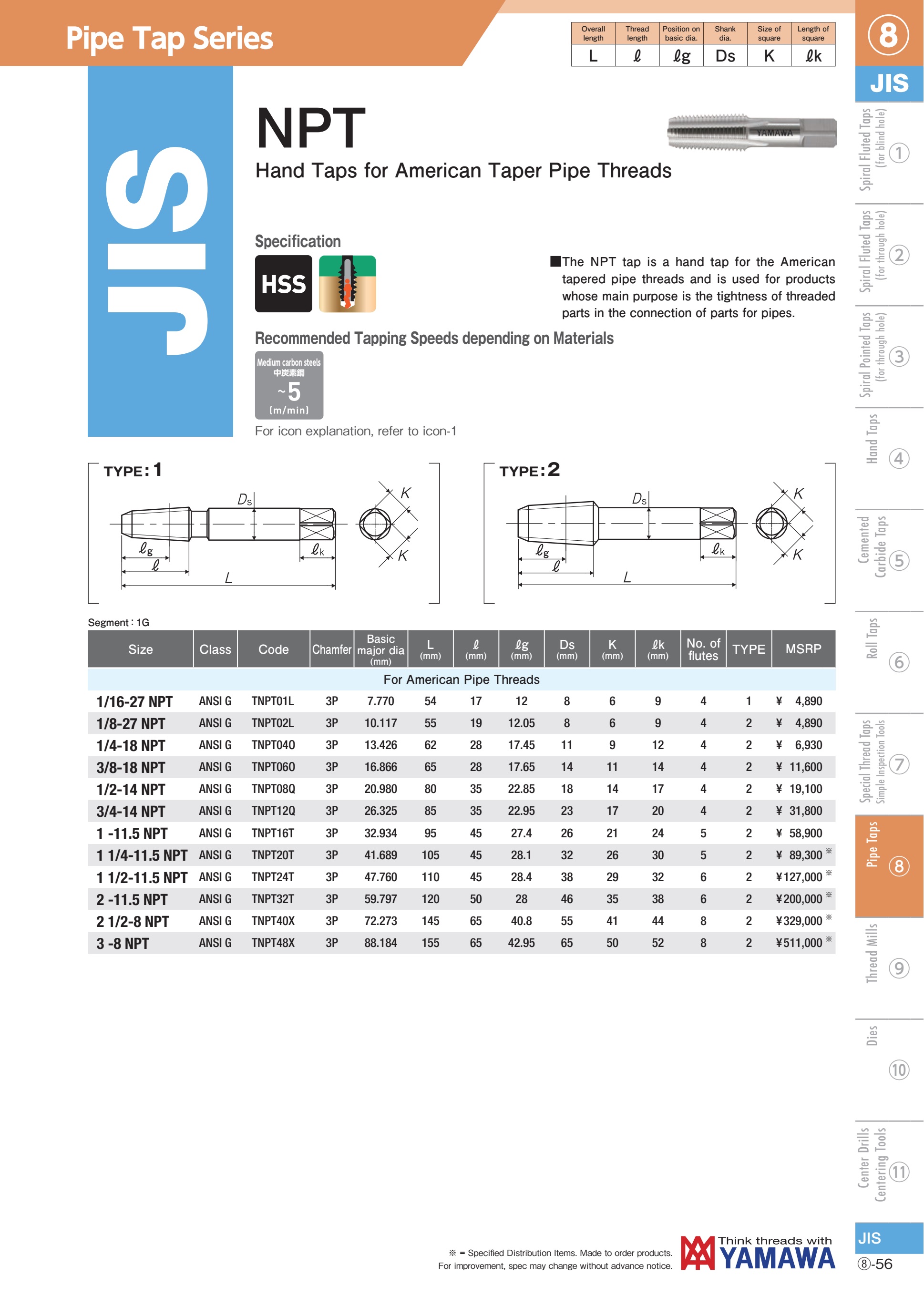 | TNPT20T | NPT | Mũi taro ren ống côn 1 1/4-11.5 NPT | Liên hệ |