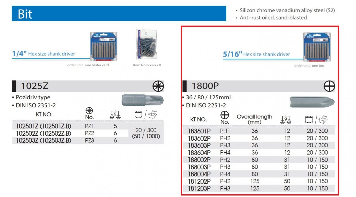 Quy cách: PH2 x 36mm, PH3 x 36mm, PH2 x 80mm, PH3 x 80mm