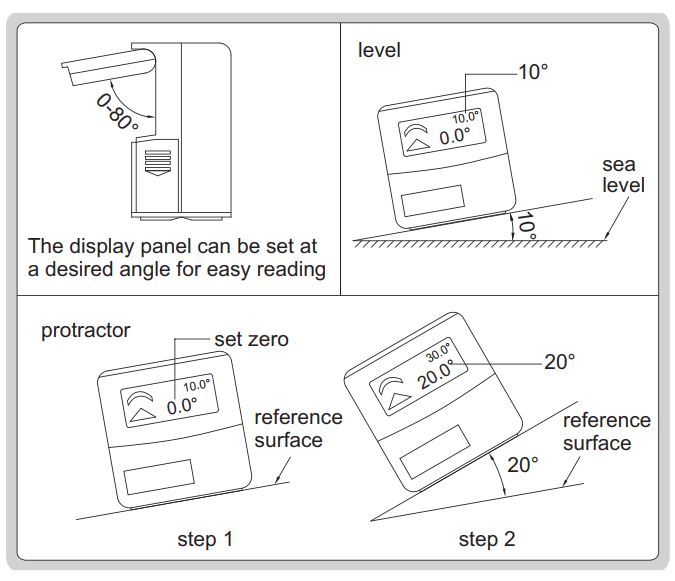 - Bảng hiển thị có thể được đặt ở một góc mong muốn để dễ đọc (The display panel can be set at a desired angle for easy reading).