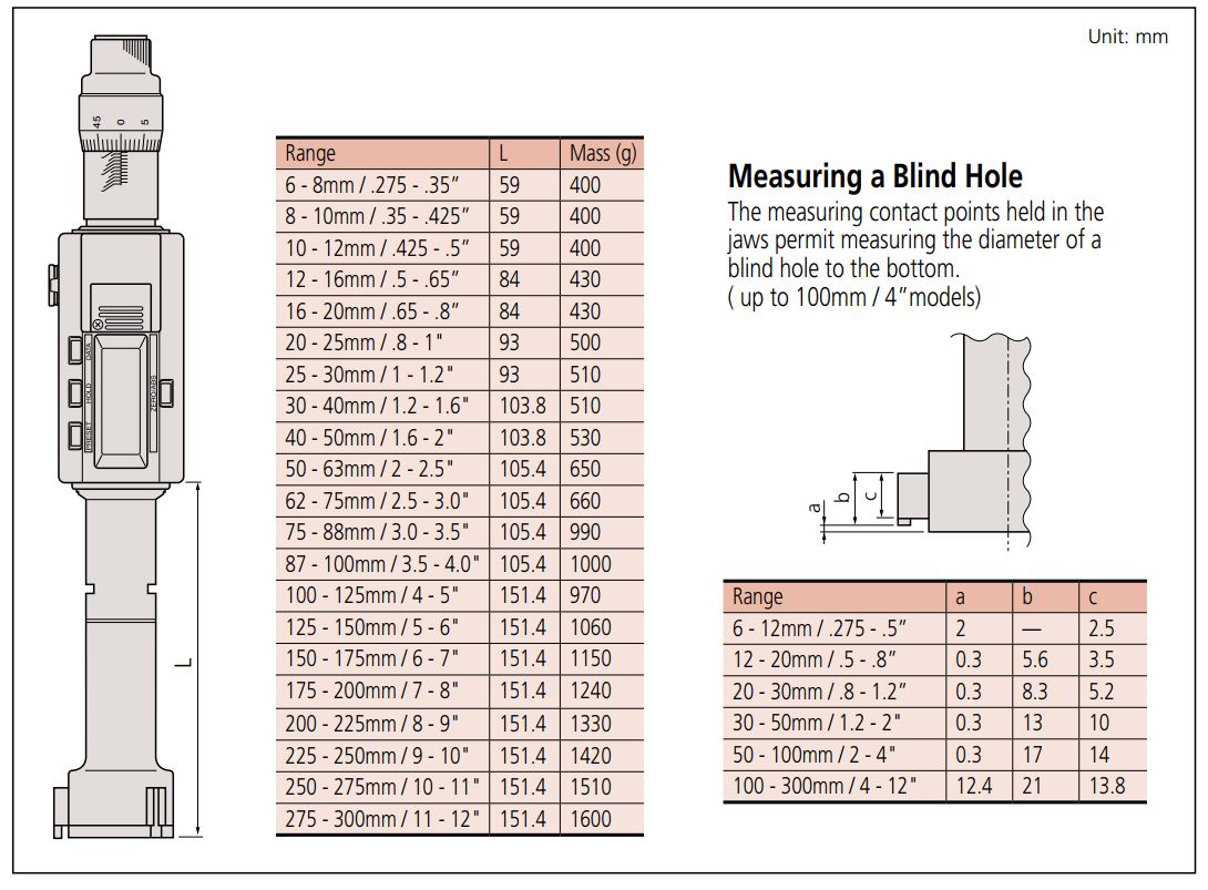 Thông số kỹ thuật Panme Đo Lỗ 3 Chấu Điện Tử Mitutoyo 468-165