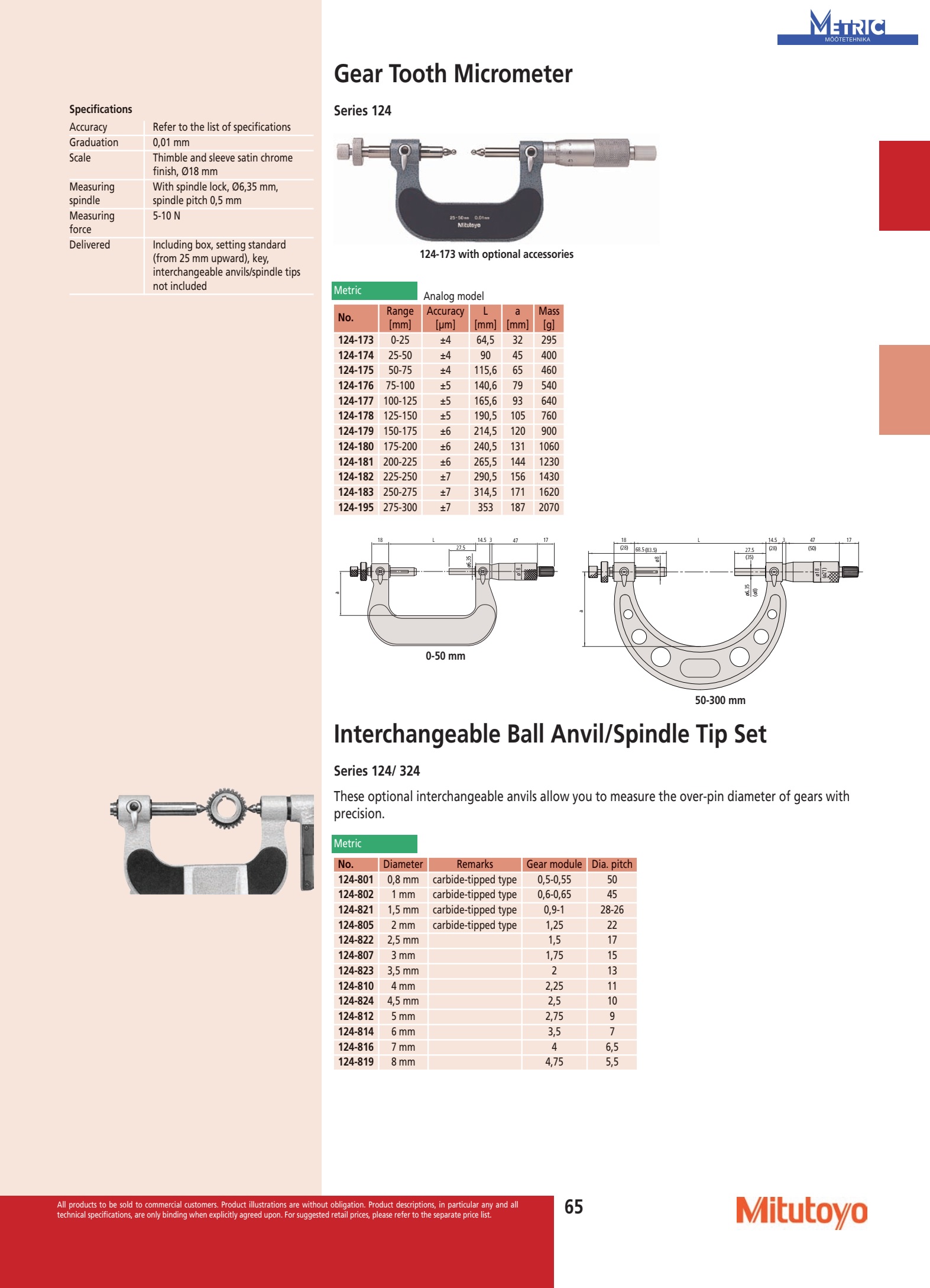 Mitutoyo, được thành lập vào ngày 22 tháng 10 năm 1934 được thành lập bởi Yehan Numata (沼 田 恵 範 Numata Ehan) với một sản phẩm, thước đo micromet. Triết lý của Mitutoyo lúc đó là sản xuất thước đo micromet chất lượng cao, nhưng cũng để sản xuất chúng với số lượng đủ để mang đến giá cả phải chăng và có sẵn cho tất cả các sản xuất. Triết lý này đã được mở rộng trong vài thập kỷ tiếp theo để đưa ra phạm vi sản phẩm rộng hơn tập trung vào các sản phẩm cơ khí, thước đo kích thước, chẳng hạn như kẹp, chỉ số vòng và các dụng cụ đo khác.